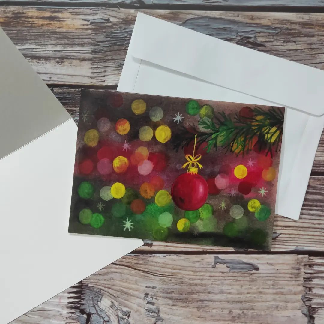 Bokeh is primarily a photographic effect that uses out-of-focus lights as the background to a clear object in focus. Painting this bokeh effect has been quite the trend in recent times. This was the second Christmas card series back when I began illustrating cards.